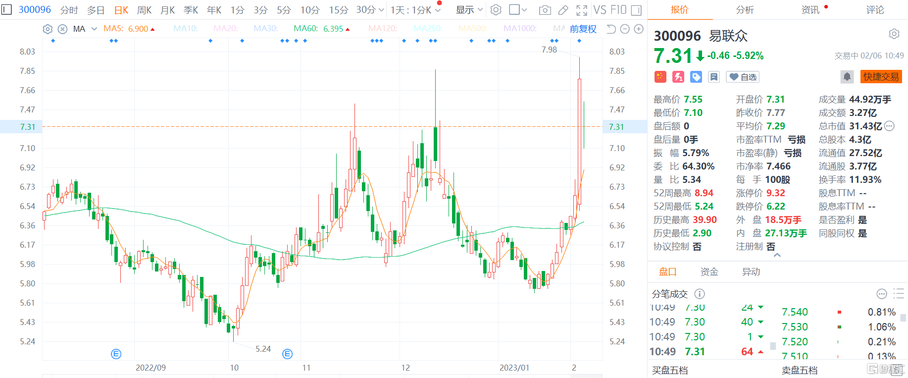 格隆汇2月6日丨易联众(300096)跌近6%,报7.31元,总市值31亿元。易联众公布,公司于2023年2月2日接到持股5%以上股东微医控股函告,获悉微医控股自2022年12月23日至2023年2月2日期间通过证券交易系统集中竞价方式合计减持公司股份430万股,占公司总股本的1.00%,本次减持计划实施减持数量已过半。